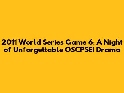 Hey baseball fanatics! Let's rewind the clocks and dive back into the electrifying atmosphere of the 2011 World Series Game 6, a contest that has etched itself into the annals of baseball history. This game, a rollercoaster of emotions, showcased the raw grit, the nail-biting suspense, and the unpredictable nature of the sport. We'll be talking about the OSCPSEI (Organizational Structure, Culture, Processes, Strategy, Environment, and Information) that played such a crucial role in shaping the outcomes of the game. Get ready to relive every heart-stopping moment, the improbable comebacks, and the unforgettable performances that defined this classic matchup. We will also dissect how these key OSCPSEI elements influenced the teams, players, and overall narrative of this iconic game.