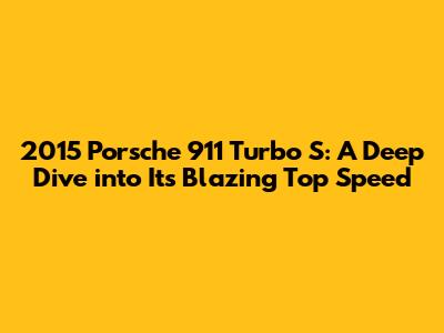 Hey guys! Ever wondered about the sheer velocity of a Porsche 911 Turbo S? Let's zoom into the 2015 Porsche 911 Turbo S top speed, a car that's more than just a ride; it's a statement. This article is your pit stop for everything speed-related, from its mind-blowing acceleration to the engineering marvel that makes it all possible. Get ready to have your socks blown off because this beast is designed to redefine what fast means.