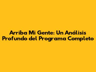 ¡Hola a todos los entusiastas de 'Arriba Mi Gente'! Si son como yo, seguramente están enganchados a este programa. Ya sea por sus entrevistas, segmentos de entretenimiento o simplemente por la vibra positiva que transmite, 'Arriba Mi Gente' se ha ganado un lugar especial en nuestros corazones y en nuestras pantallas. Este artículo es para ustedes, un análisis detallado de todo lo que implica este programa, desde su formato y contenido hasta su impacto en la audiencia. Así que, ¡preparémonos para sumergirnos en el mundo de 'Arriba Mi Gente'!