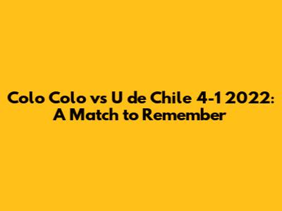 Hey guys! Let's dive into a legendary clash – the Colo Colo vs. U de Chile match from 2022, which ended in a thrilling 4-1 victory. This wasn't just another game; it was a battle filled with passion, intense moments, and unforgettable plays. Whether you're a die-hard fan or just curious about Chilean football, this match has something for everyone. We'll break down the key moments, discuss the standout players, and explore what made this game so special. So, grab your favorite snack, settle in, and let’s get started!