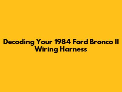 Hey there, fellow Bronco II enthusiasts! Ever found yourself staring at a tangled mess of wires under the hood, scratching your head and wondering where to even begin? If you're tackling any electrical issue on your classic 1984 Ford Bronco II, understanding the wiring harness is absolutely crucial. Think of it as the nervous system of your truck; it's what sends signals and power to every component, from your headlights to your fuel pump. This guide is designed to help you navigate the often-confusing world of your Bronco II's electrical system, making repairs and upgrades a whole lot less daunting.