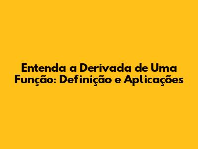 Entenda A Derivada De Uma Função: Definição E Aplicações