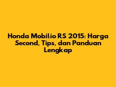 Honda Mobilio RS 2015: Harga Second, Tips, Dan Panduan Lengkap