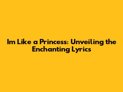 I'm Like A Princess: Unveiling The Enchanting Lyrics
