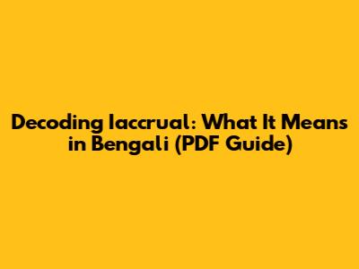 Hey everyone! Ever stumbled upon the term "iaccrual" and wondered what on earth it means, especially if you're looking for information in Bengali and perhaps a handy PDF guide? You're not alone, guys! It's one of those terms that can pop up in various contexts, often related to finance, accounting, or even legal documents. So, let's dive deep and break down the meaning of "iaccrual" and how it translates into Bengali, making sure we cover all the bases so you can understand it like a pro. We'll aim to give you a clear, comprehensive explanation, touching upon its nuances and providing examples, all while keeping that PDF accessibility in mind. Our goal is to demystify this term, whether you're a student, a professional, or just someone trying to make sense of a document. We're going to unpack this together, so buckle up and get ready for a breakdown that’s both informative and easy to digest. Think of this as your go-to resource for understanding "iaccrual" in the Bengali context, ensuring you have the knowledge you need at your fingertips. We'll explore its origins, its common applications, and how it's best represented in the Bengali language, so you won't be left scratching your head anymore.