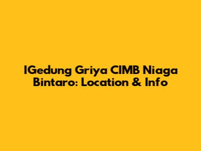 Alright, guys, let's dive into everything you need to know about IGedung Griya CIMB Niaga Bintaro. Whether you're planning a visit, need some key information, or are just curious about this building, I've got you covered. We'll explore its location, what makes it significant, and other essential details. So, buckle up, and let's get started!