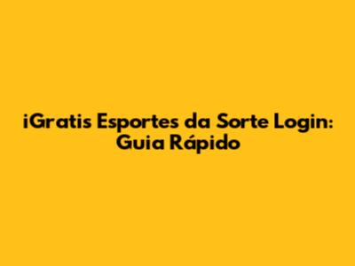 IGratis Esportes Da Sorte Login: Guia Rápido