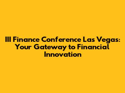 Hey guys! Are you ready to dive into the exciting world of finance? Let's talk about the III Finance Conference in Las Vegas, an event that's not just another conference but a crucial hub for anyone serious about the future of finance. Whether you're a seasoned pro or just starting out, understanding the ins and outs of this conference can seriously boost your career and broaden your horizons.