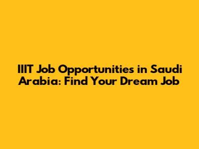IIIT Job Opportunities In Saudi Arabia: Find Your Dream Job