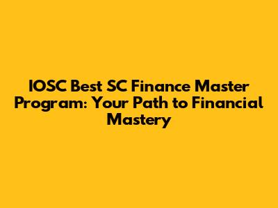 IOSC Best SC Finance Master Program: Your Path To Financial Mastery