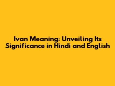 Ivan Meaning: Unveiling Its Significance In Hindi And English