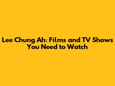 Must-Watch Lee Chung Ah Films