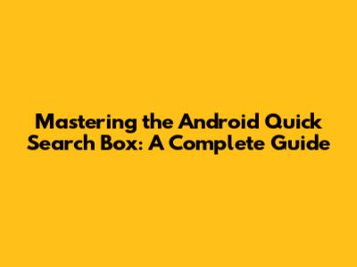 Mastering The Android Quick Search Box: A Complete Guide