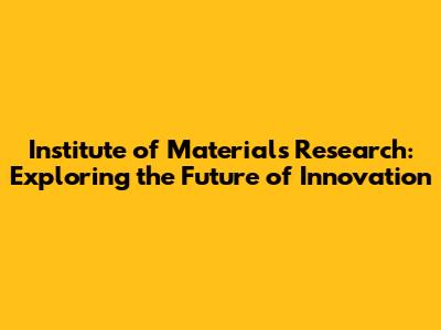 Why is the Institute of Materials Research Important?