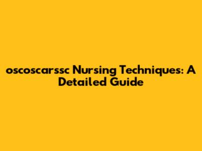 Nursing Techniques By Oscoscarssc: A Detailed Guide