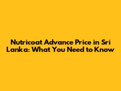 Nutricoat Advance Price In Sri Lanka: What You Need To Know