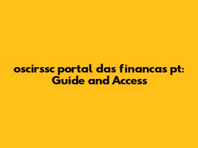Oscirssc Portal Das Financas Pt: Guide And Access