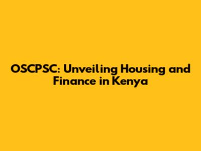 OSCPSC: Navigating Housing And Finance In Kenya