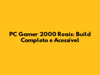 PC Gamer 2000 Reais: Build Completo E Acessível