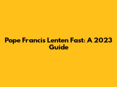 Pope Francis' Lenten Fast: A 2023 Guide