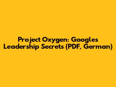 • Search Google (in German!): Use keywords like "Project Oxygen Google PDF Deutsch" or "Google Führungskräfteentwicklung Project Oxygen PDF" to search for German articles, translations, or summaries. You might stumble upon a translated version or a detailed explanation in German.