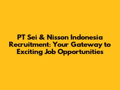 PT Sei & Nisson Indonesia Recruitment: Job Opportunities