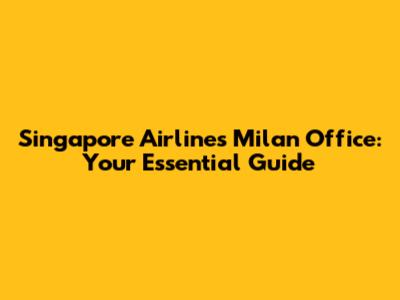Singapore Airlines Milan Office: Your Essential Guide