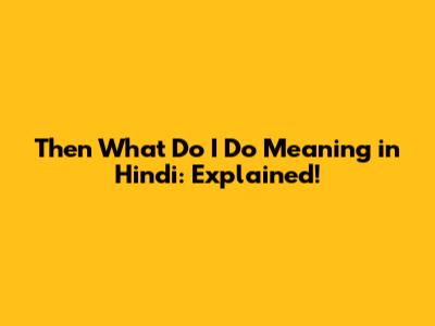 Then What Do I Do Meaning In Hindi: Explained!