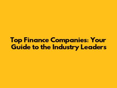 Top Finance Companies: Your Guide To The Industry Leaders