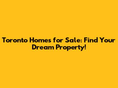 Toronto Homes For Sale: Find Your Dream Property!