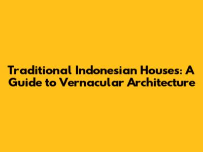 Traditional Indonesian Houses: A Guide To Vernacular Architecture