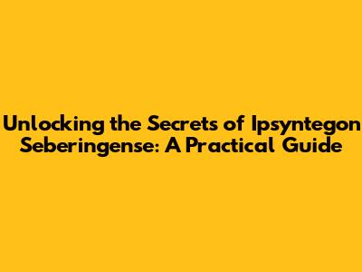 Unlocking The Secrets Of Ipsyntegon Seberingense: A Practical Guide