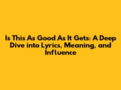 Unpacking Is This As Good As It Gets: Lyrics, Meaning, And Impact
