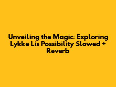 Unveiling The Magic: Exploring Lykke Li's 'Possibility' Slowed + Reverb