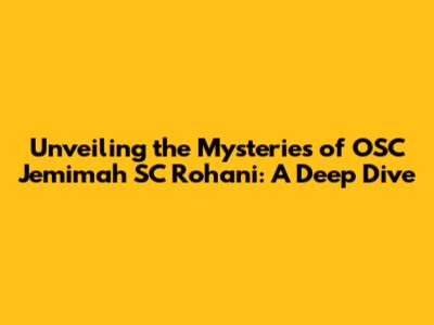 Unveiling The Mysteries Of OSC Jemimah SC Rohani: A Deep Dive