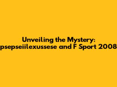 Unveiling The Mystery: Psepseiilexussese And F Sport 2008